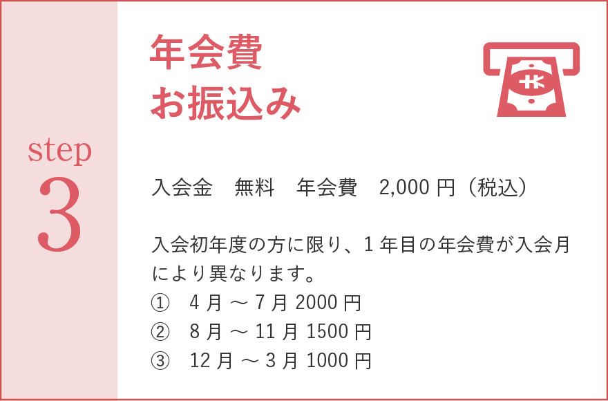 (お振込み金融機関でお受け取りの受領書は、会員証が届くまで大切に保管ください)